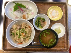 メイン→釜飯(鶏と牛蒡と茸)
